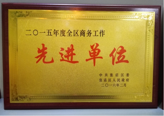 经张店区区委,张店区人民政府批准,365在线登录入口获得“二0一五年度全区商务工作先进单位”荣誉称号。